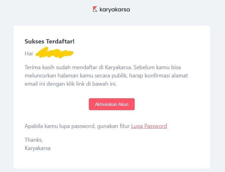 Activating your KaryaKarsa account via email is necessary to ensure that your KaryaKarsa page is active and you can start receiving support. The process is easy, just 3 steps.
