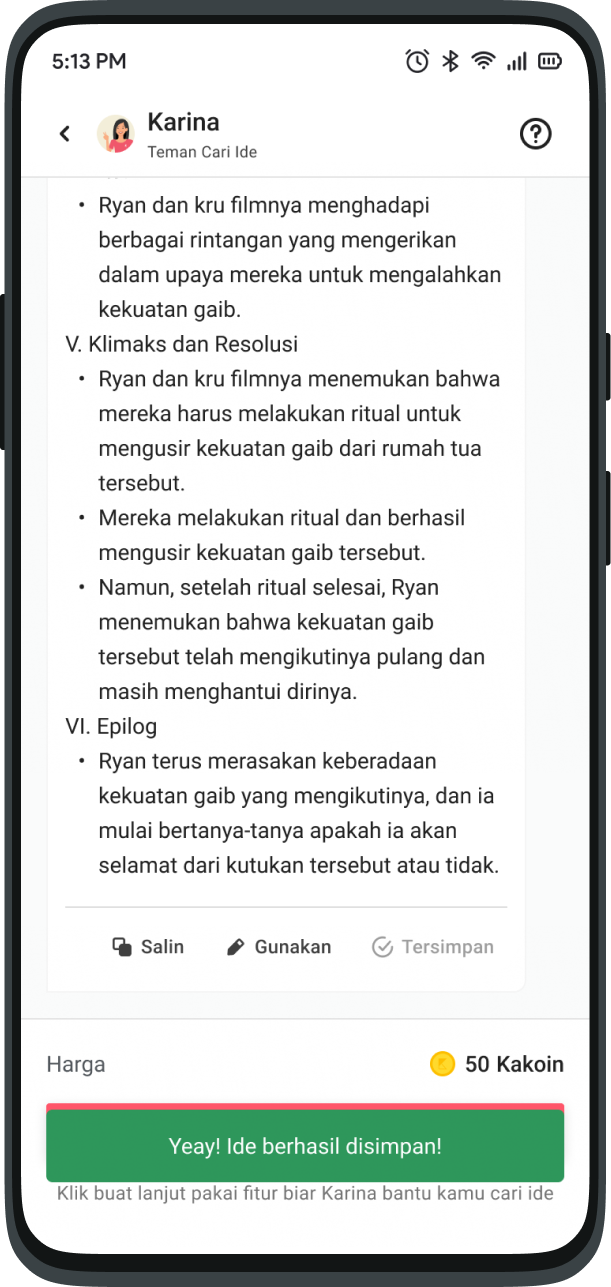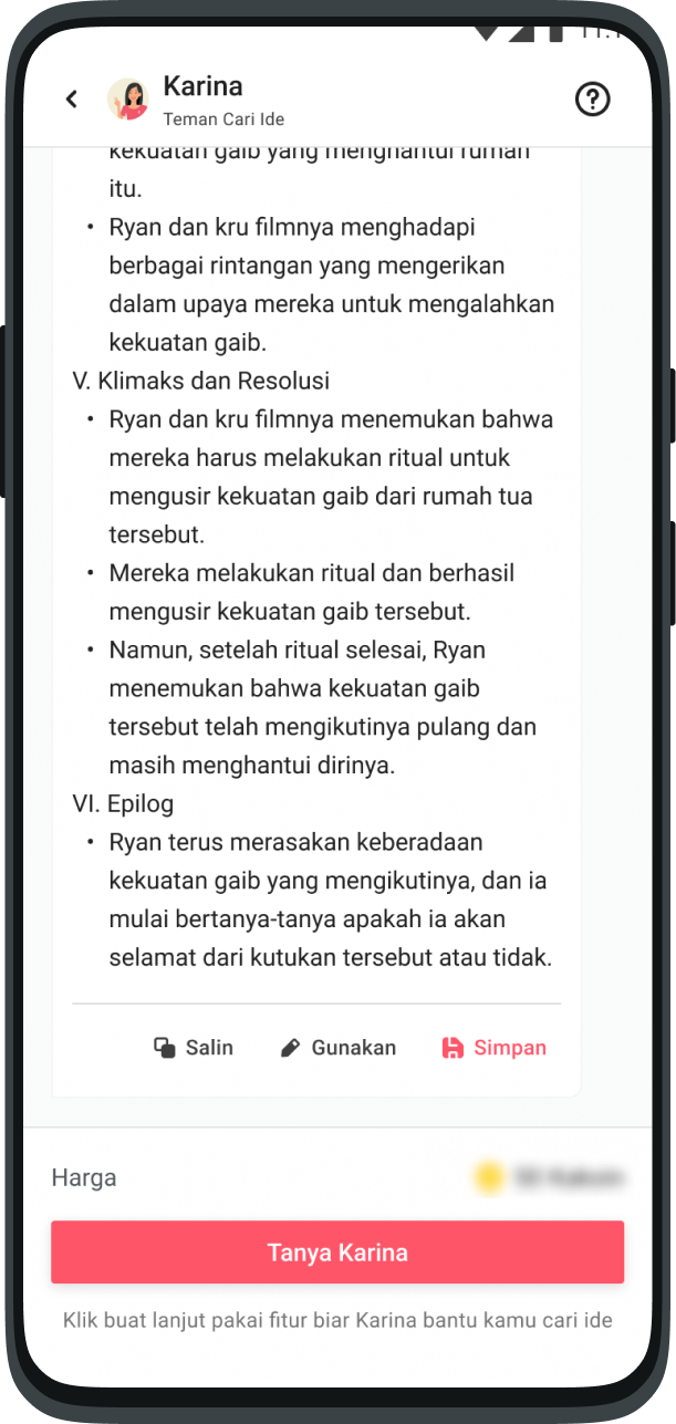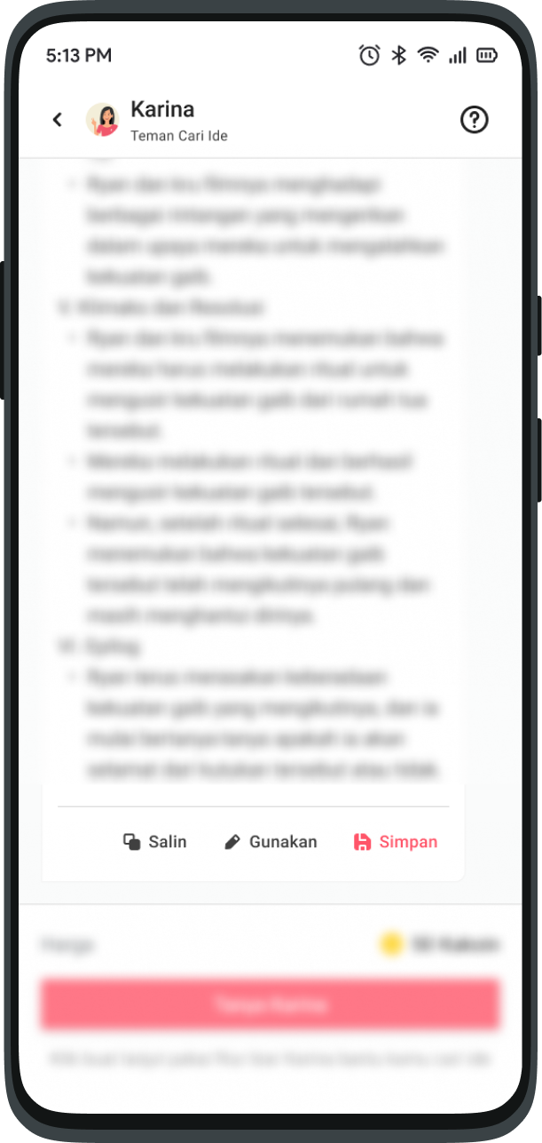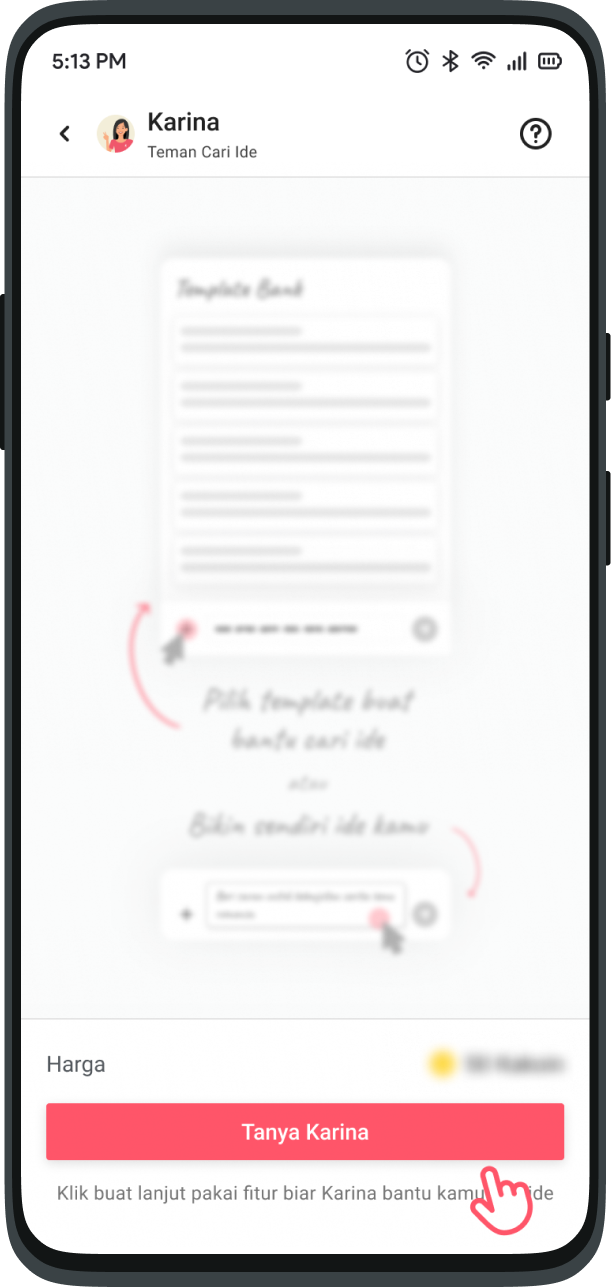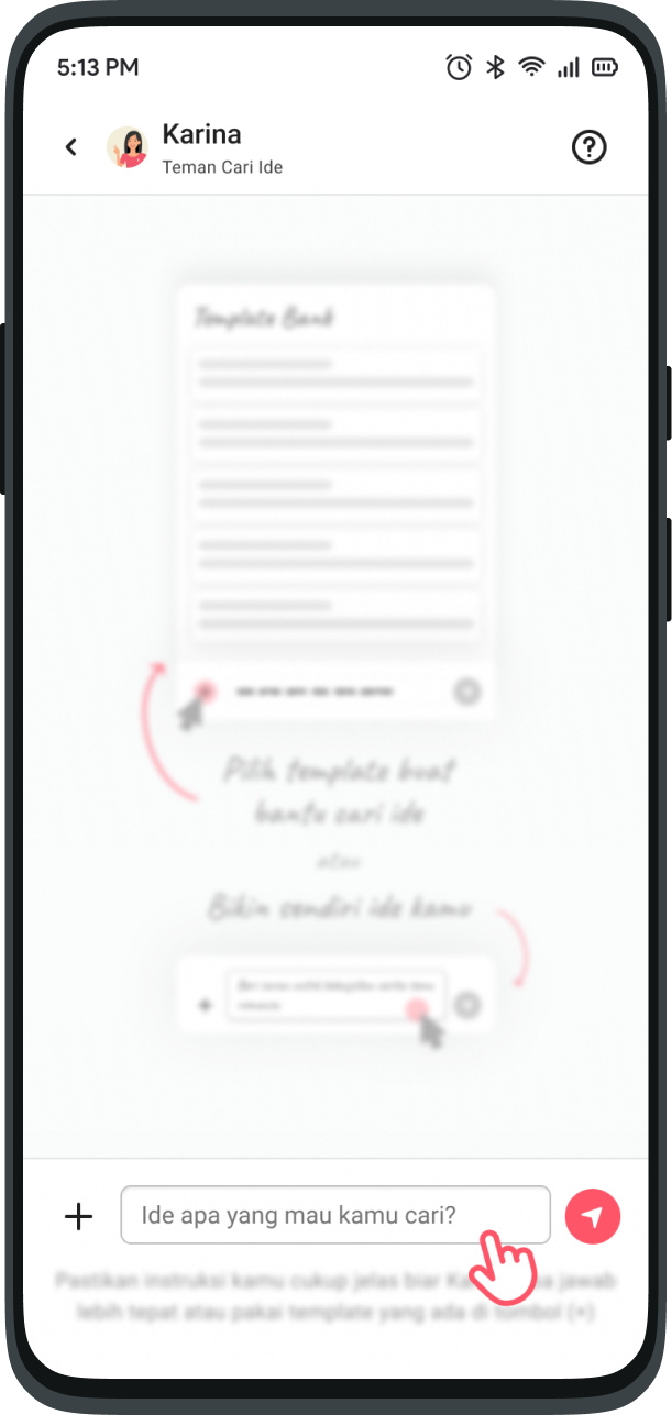 This feature is like asking your friends via chat. Ask anything about Karya inspiration, Karina is ready to help you.