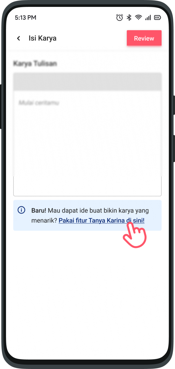 Currently, you can find the Karina feature when you want to create a description of your work and written work on the KaryaKarsa application or via a browser.