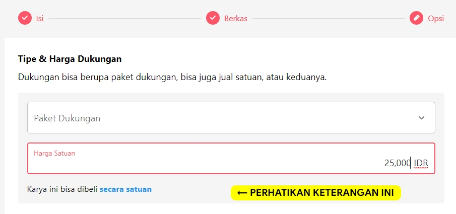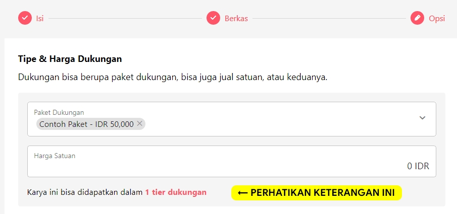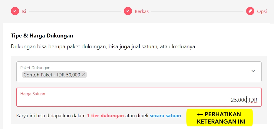 In addition to being offered in single units, your work can also be offered in the form of selling units and packages at once. The goal is for your supporters to have more price options.