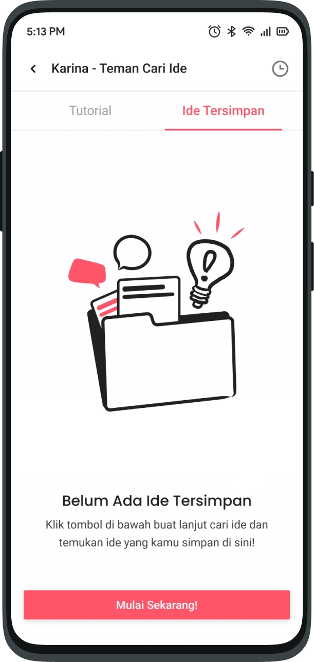 Visit the successfully saved Ideas on the "Saved Ideas" tab on the Karina- Idea Buddy Home Page