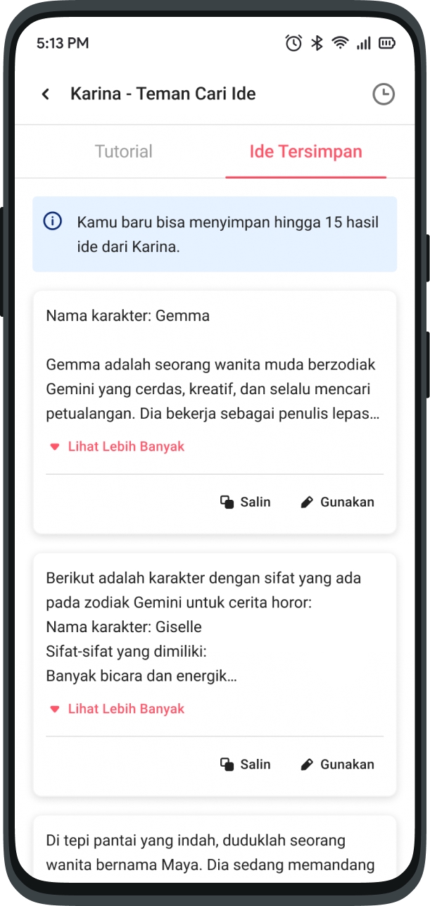 On this page, ideas that have been successfully saved can also be copied or used directly for your work. Here's a very simple way for you to save ideas from Karina.