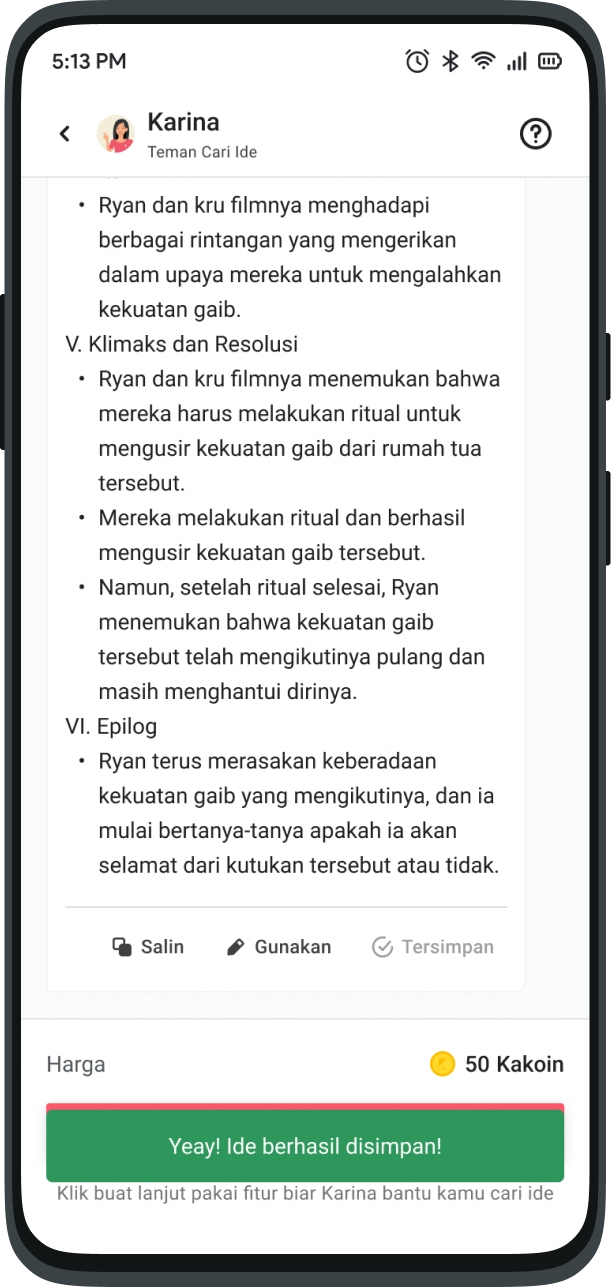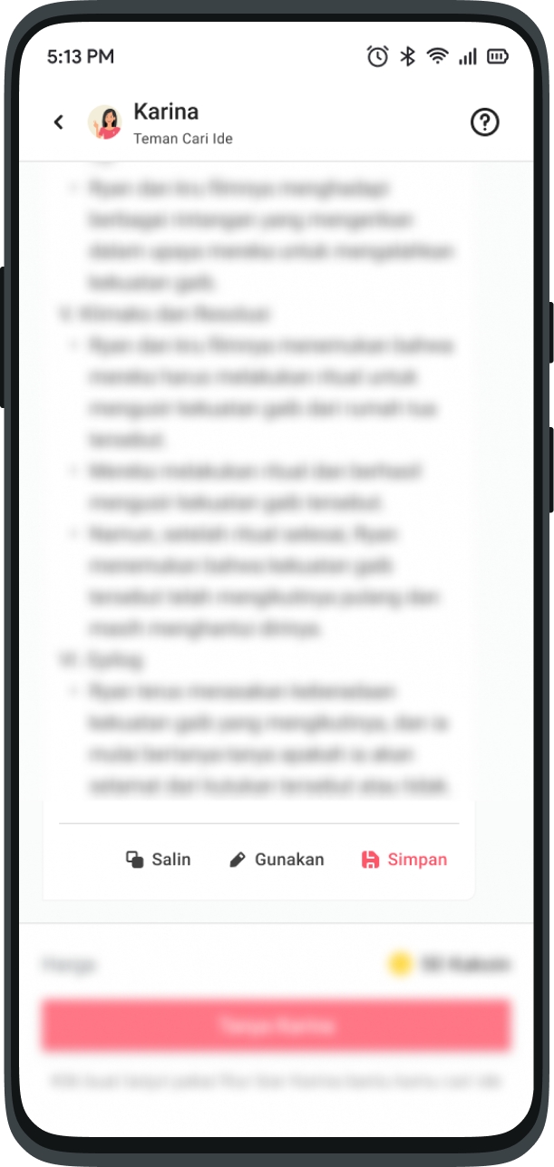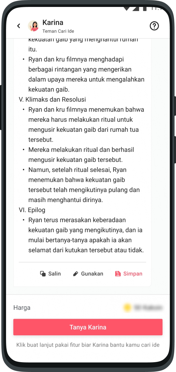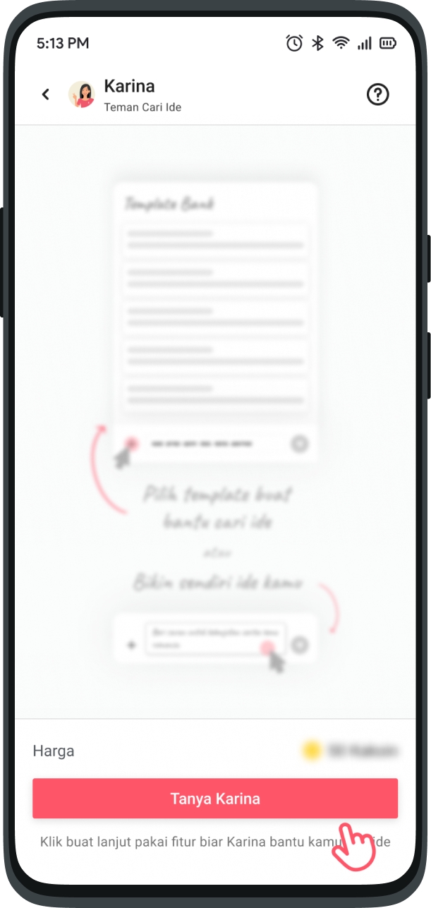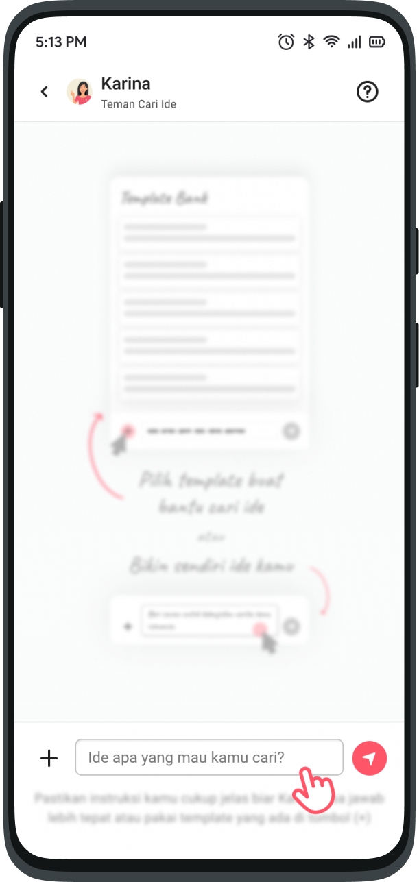 This feature is like asking your friends via chat. Ask anything about Karya inspiration, Karina is ready to help you.