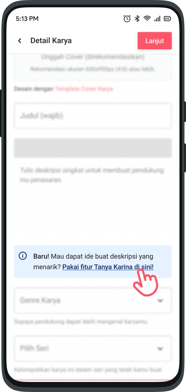 Currently, you can find the Karina feature when you want to create a description of your work and written work on the KaryaKarsa application or via a browser.