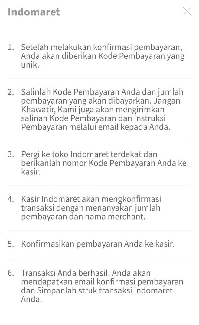 Please pay attention to the following instructions if you choose the payment method via Indomaret.
