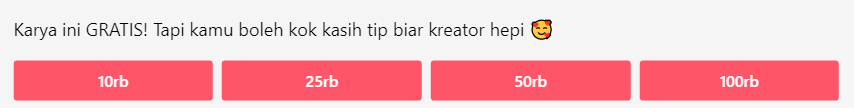 Tips are an extra appreciation that you can give to your creators. It is important to note that tipping is not the same as buying the work. Tips are available in 4 price options, which are 100 kakoin, 250 kakoin, 500 kakoin, 1000 kakoin.