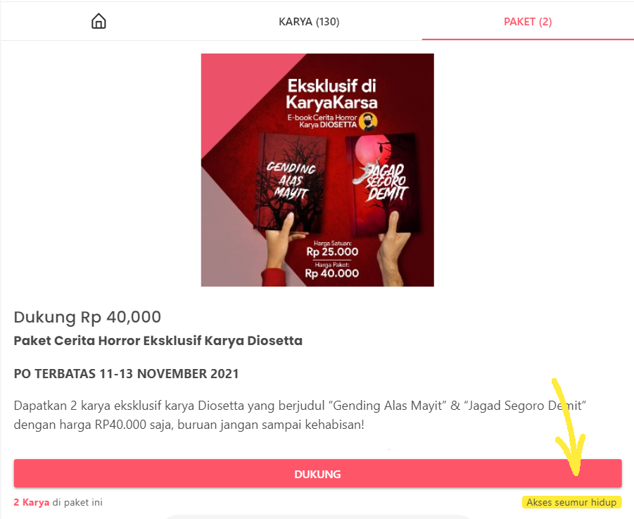 By paying for content that is included in a support bundle, you can access all the content in the support bundle. Pay attention to the active period of the package set by the creator. There are bundles that give lifetime access, but there are also those that are only valid for the next 30 days after you make the payment.