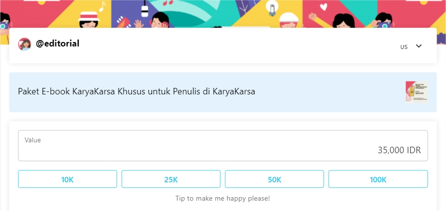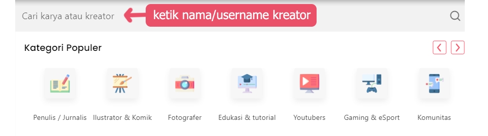 Before doing support, you must first know what kind of support you can provide in KaryaKarsa. So, let's enter through the link provided by the creator or search on the creator search page.
