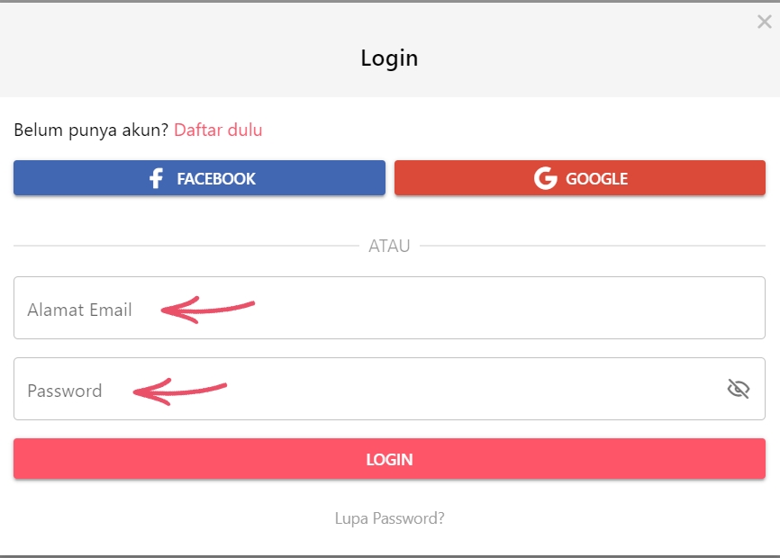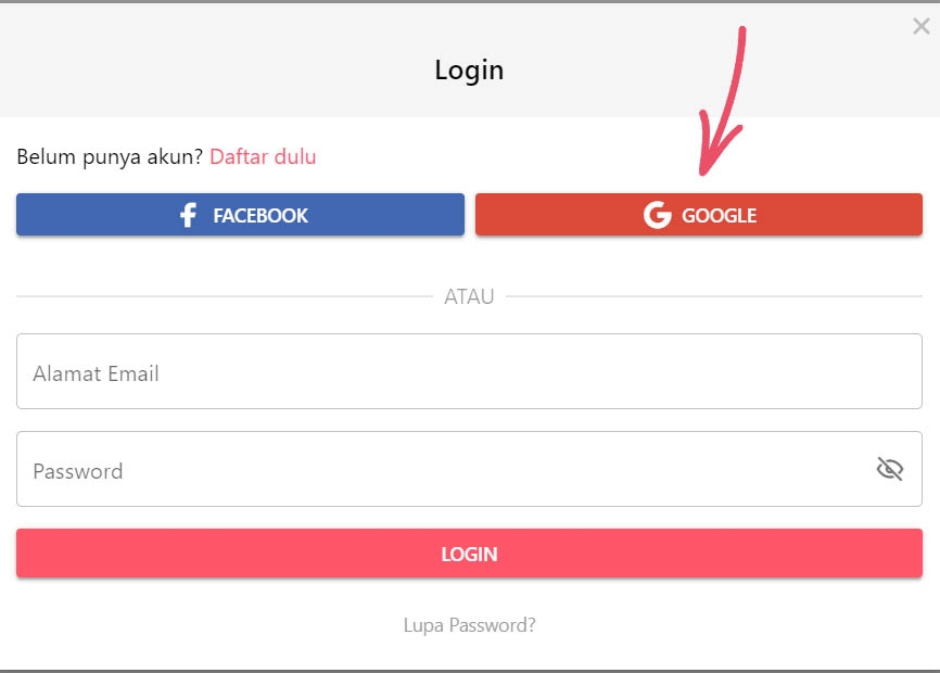 You registered for KaryaKarsa using Gmail email? Well, this is the easiest way and the process is similar to that used in several other applications. Just press the red button that says GOOGLE and you're done. You have successfully logged in.