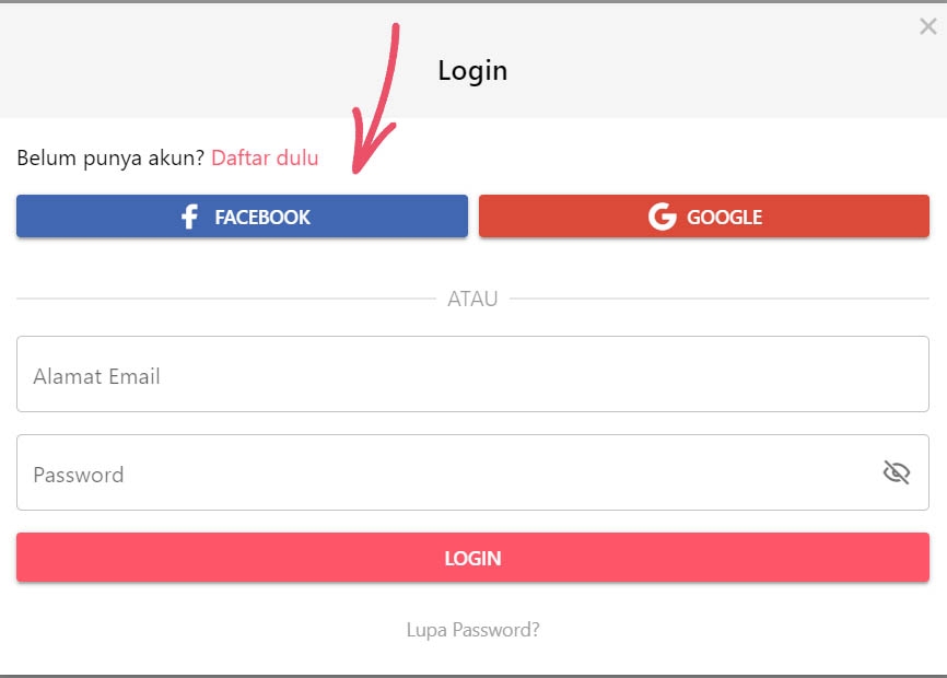Just like logging in using the GOOGLE button, you just press the blue button that says FACEBOOK and you're done. You've successfully logged in.