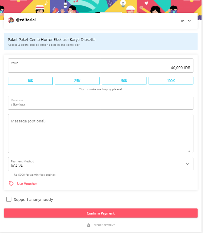 If the payment has been processed successfully, you can return to the KaryaKarsa page of your favorite creator. Make sure you are logged in. If the transaction is successful, the work that previously said "locked" will change to "open".