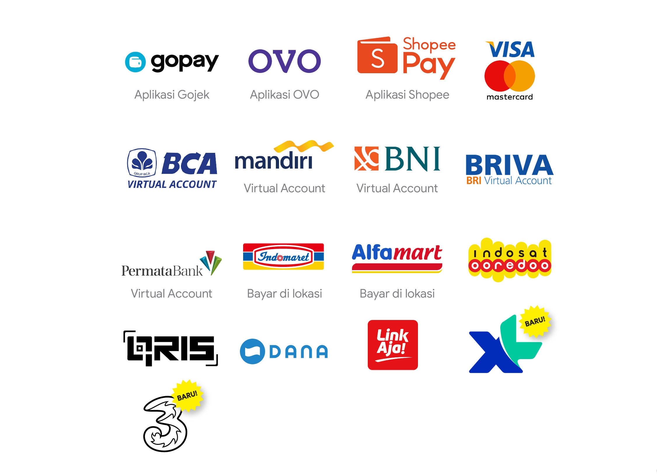 Choose a payment method: Kakoin, GoPay, OVO, Shopee Pay, Indomart, Alfamart, or bank transfer, etc.