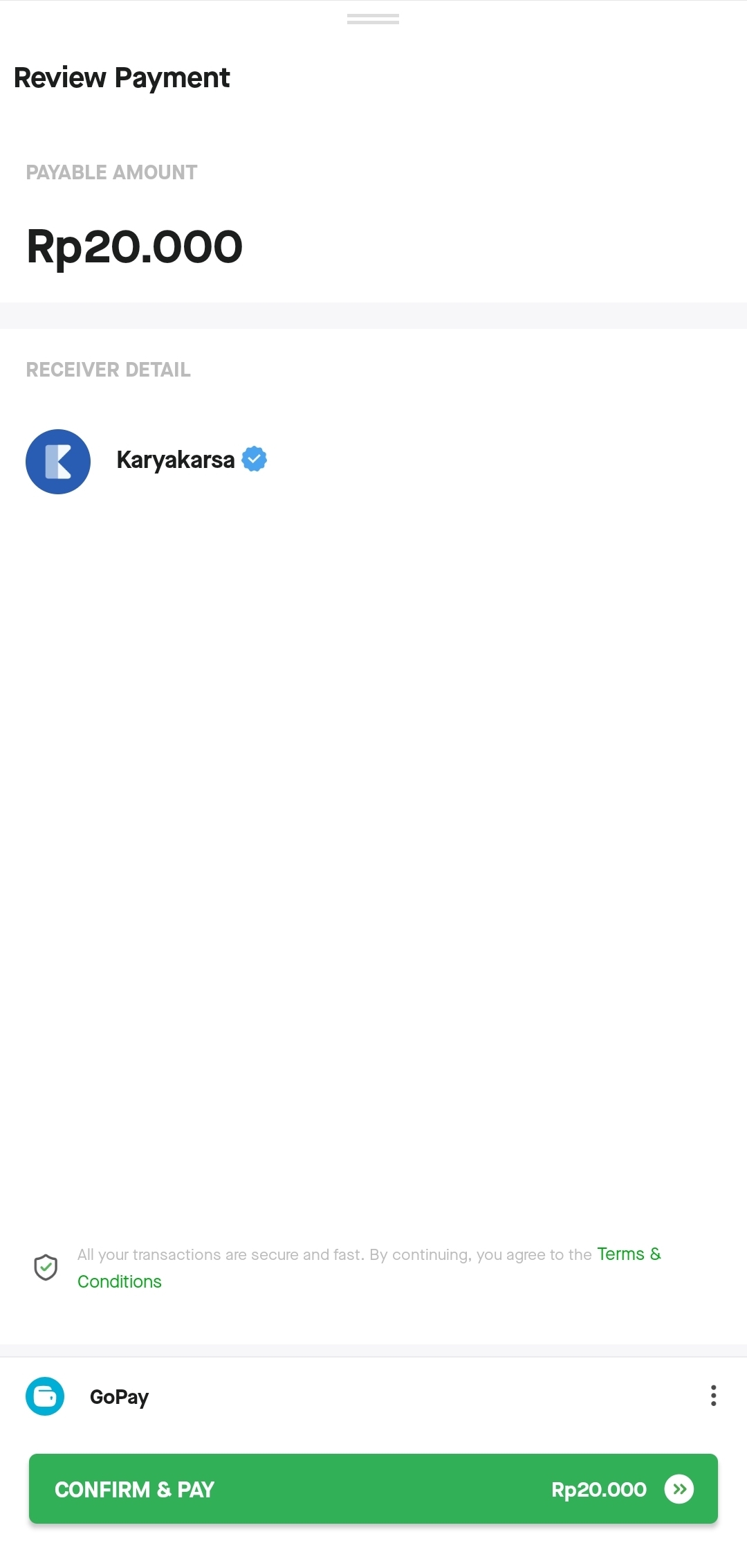 5. The GoJek application will automatically open and will ask you to confirm the transaction again. Please press "Confirm & Pay".