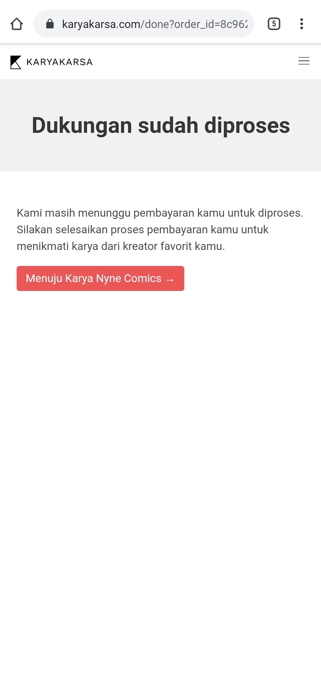 8. If the transaction has been successfully processed, you can re-enter the page to access the work. If the page has been closed, you can enter and log in to the KaryaKarsa website, and access the content through the User Feed or the creator page.