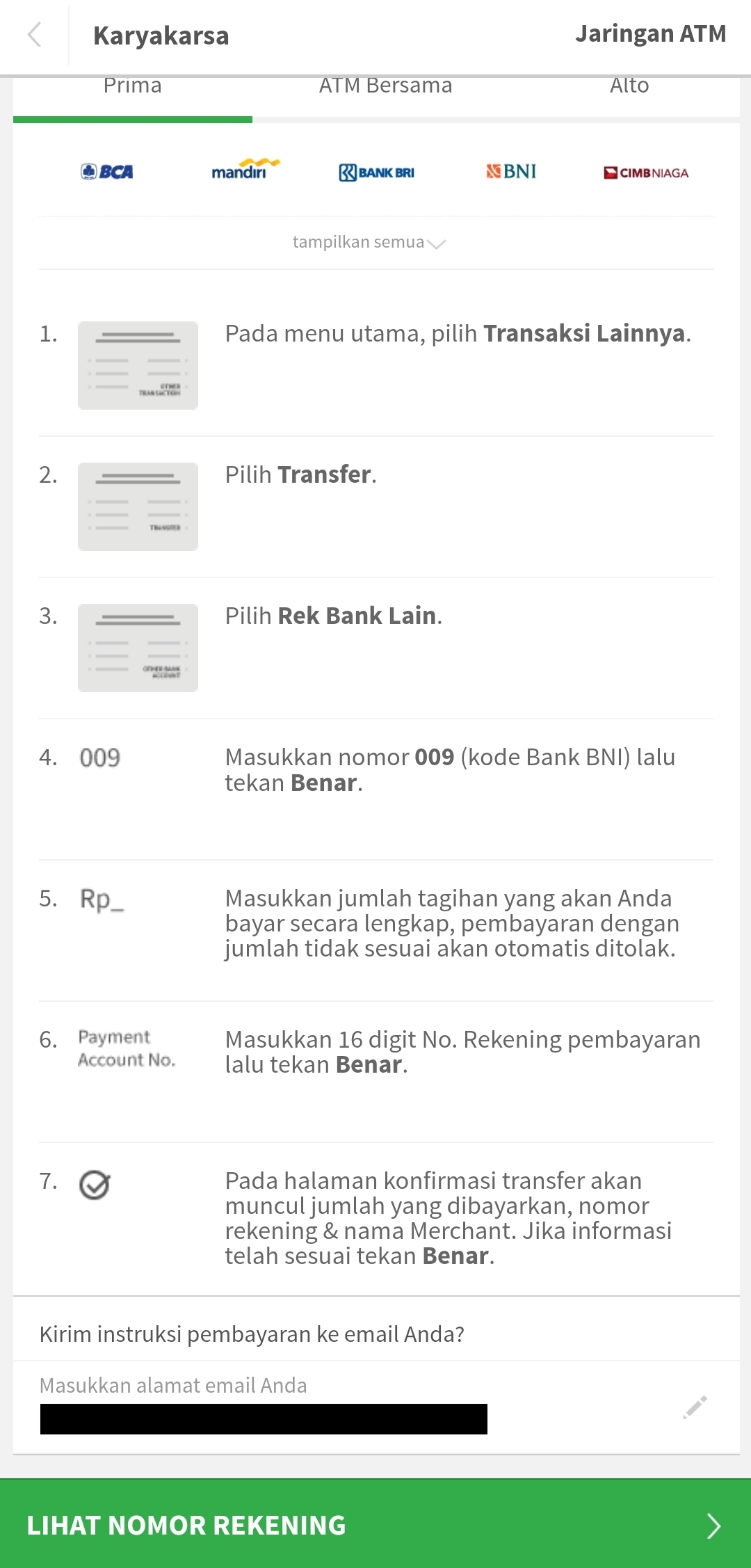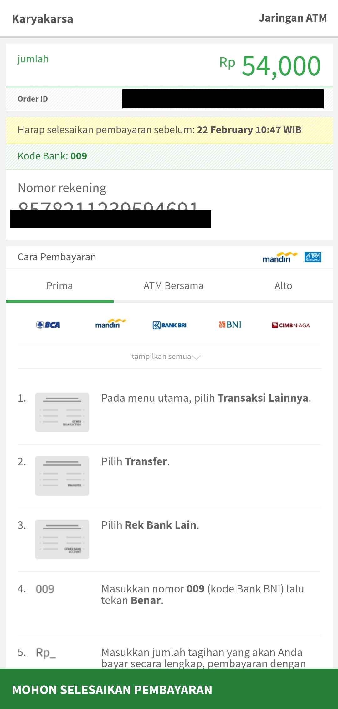 If you want to pay by transfer to a virtual account (VA), please follow the steps below.